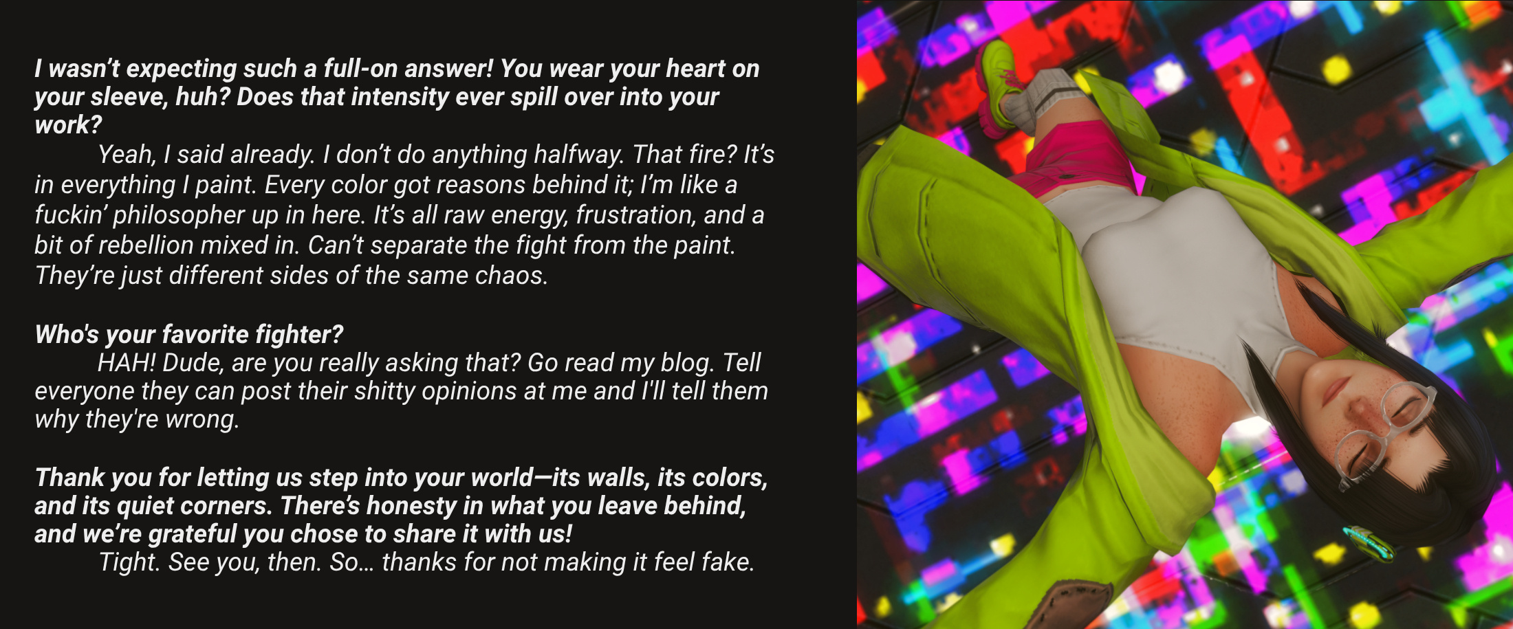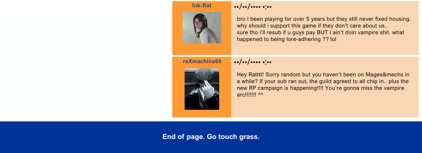 No, this isn't one of those self-insert S9 characters who whip out their "phone" in the middle of the Quicksand. Jade is a Final Fantasy character who engages with the themes of Dawntrail.Jade is a low-powered, grounded character, and I prefer to RP with others who feel similarly believable and setting-appropriate. While I respect creative freedom, I’m not interested in overpowered or lore-breaking characters. Stronger characters are welcome—as long as their power is portrayed with tact, consistency, and room for meaningful interaction.