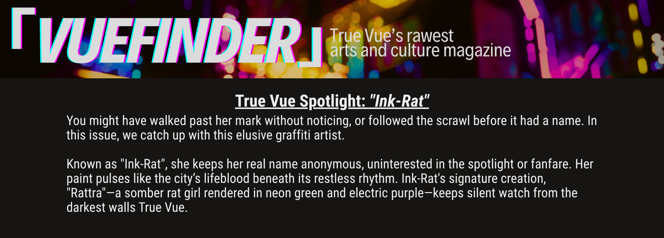 She is known as “Ink-Rat” in True Vue and on the Leynet.