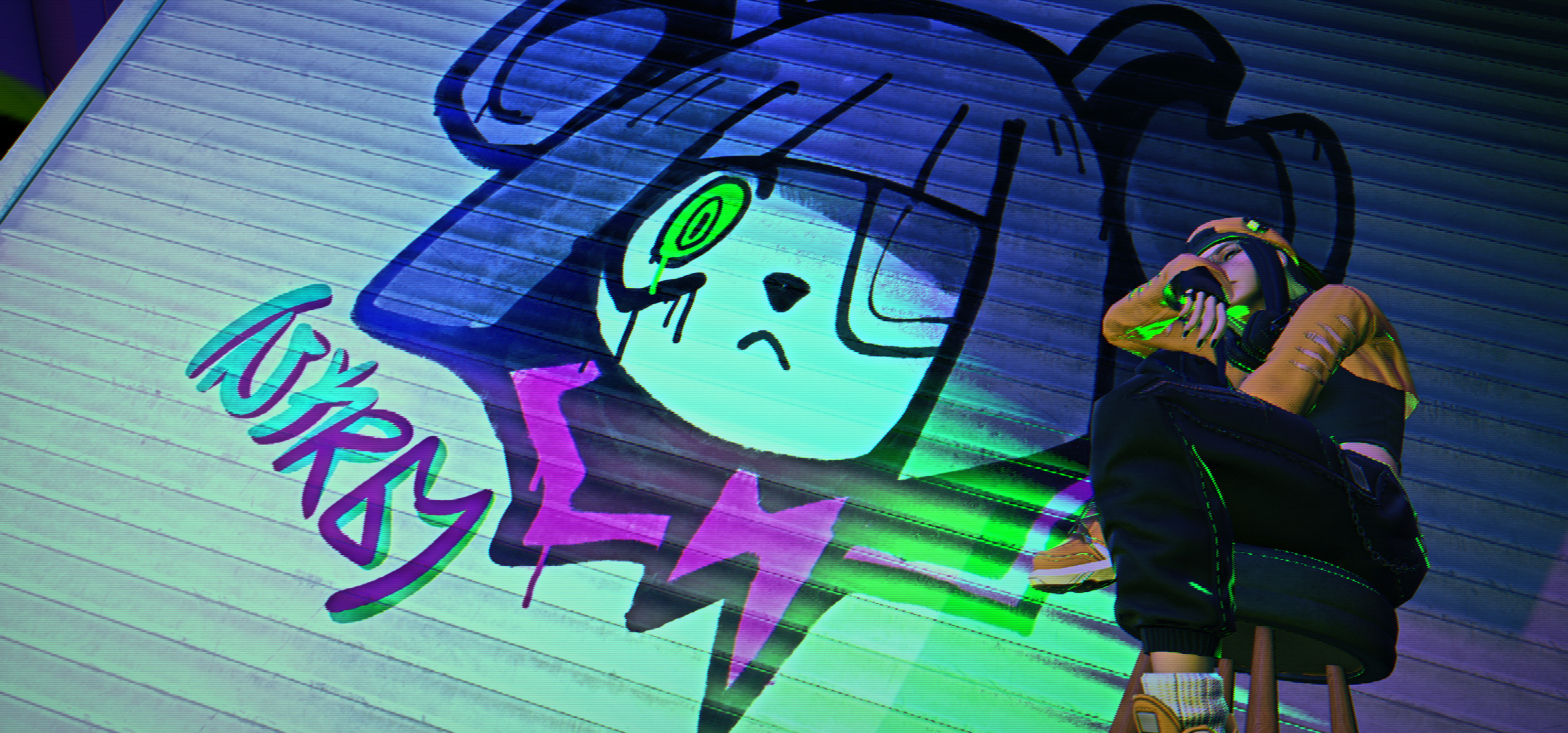 Her work appears often in True Vue’s back alleys and occasionally on vending machines.